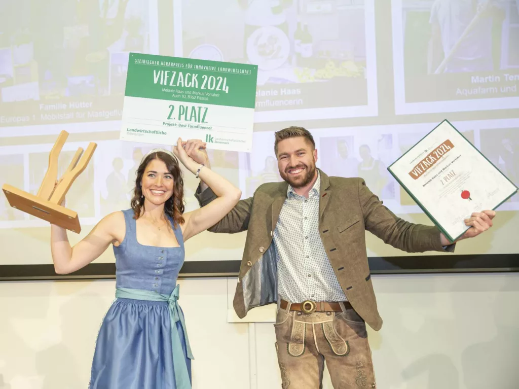 Die Farmfluencerin Melanie Haas belegt mir Markus Vorraber den großartigen 2. Platz. © LK Steiermark-Foto Fischer