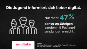Vor allem in der jungen Zielgruppe sind die Online-Aktionsportale sehr beliebt. 49 Prozent der 19- bis 29-Jährigen informieren sich auf diesen. Hingegen wird der Postwurf in dieser Gruppe zunehmend unattraktiver. In der Gruppe der 19- bis 29-Jährigen sank die Flugblattnutzung von 82,3 Prozent (2016) auf 47,1. Ein möglicher Grund für die sinkende Attraktivität könnte auch eine Alternative, wie Social Media sein. Denn mehr als ein Drittel der 19- bis 29-Jährigen nutzt Social Media-Kanäle auch zur Aktions- und Angebotssuche.