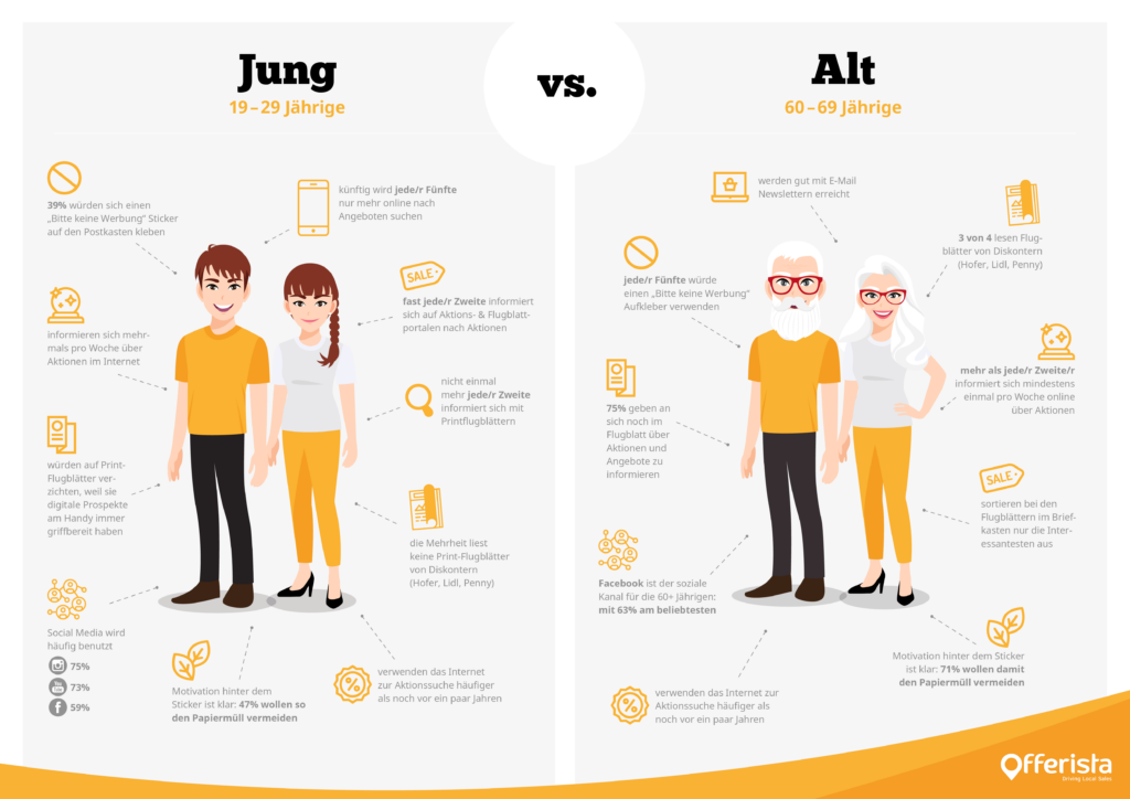 Bild: Jung vs. Alt: So unterscheidet sich das Verhalten in der Suche nach Aktionen und in der Angebotskommunikation. (© Offerista Group Austria)