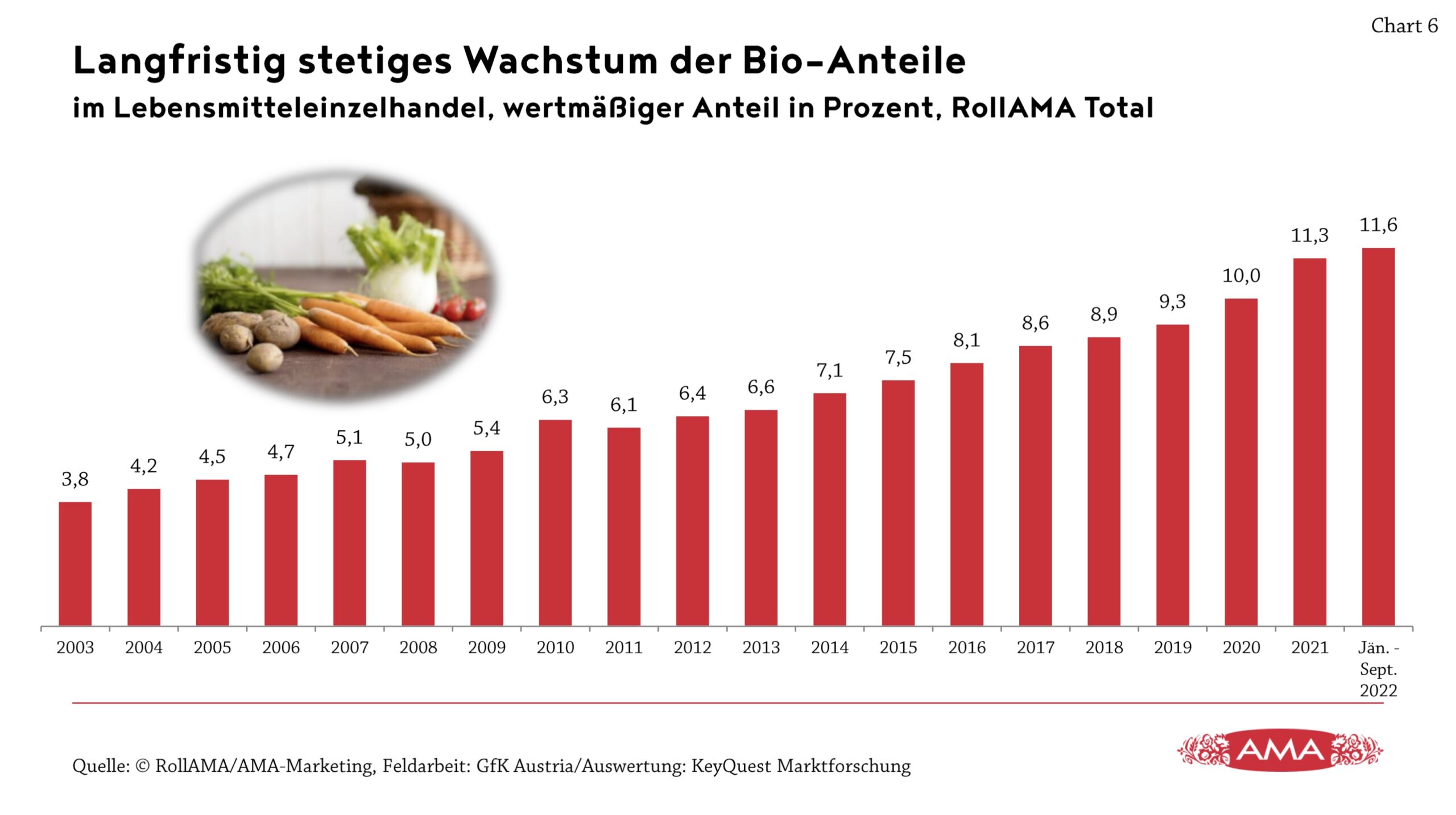 Die Preissteigerungen für die RollAMA-Frischeprodukte lagen im September bei 12,8 Prozent, also über der allgemeinen Inflationsrate von 10,7 Prozent. Der heurige Höchststand zeigte sich im August mit über 15 Prozent. Die höchsten Ausschläge sind bei Butter, Milch, Käse und Eiern im Vergleich zum Vorjahr zu beobachten. Wesentlich geringer als bei Fleisch (+ 16 %) fallen die Preiserhöhungen für Wurst und Schinken aus (+ 7 %).