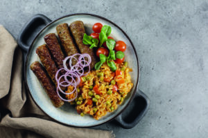 Handwerksbetriebe können Hack ab sofort spielend auf rein pflanzliche Art herstellen. Das neue, mild aromatische, Vegan Hack macht es möglich. Metzger stellen es zusammen mit Wasser und Kokosfett ganz einfach im Kutter oder Mischer her. Kunden kaufen es entweder direkt als ungebratenes Hack oder zu Bällchen, Laibchen, Sauce Bolognese, Lasagne und Co. verarbeitet.